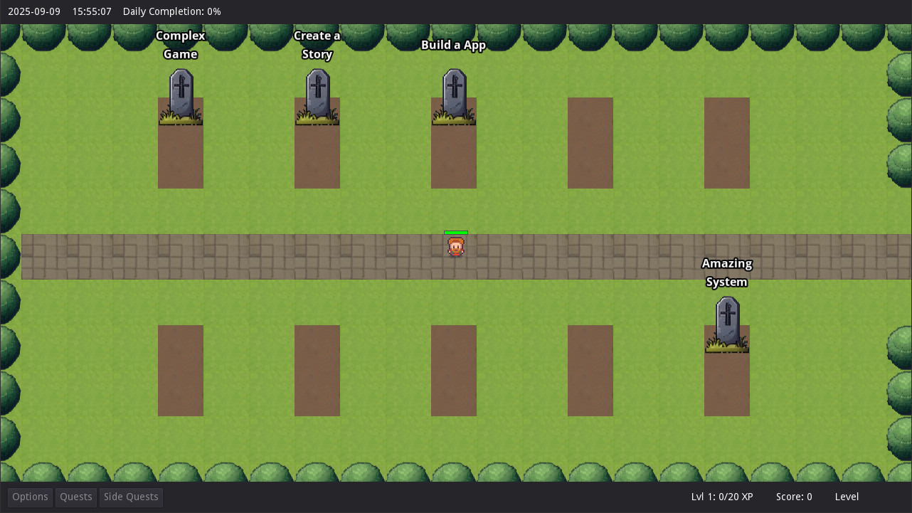 I had the idea of creating a project manager and daily task manager within the game and as the player completes real world tasks it would power them up to enter a challenge mode (a very basic vampire survivors clone). The game has 4 project areas. A graveyard for failed and abandoned projects, a back burner for inactive projects, a garden for live projects and a gallery for completed projects. These have visual representations for each of the projects. There is a quest board for projects, a side quest board for daily tasks and a UI for interacting and organizing it all. I made a prototype not just for the game jam but also as an attempt to help me (and possibly others) actually complete projects. After publishing and playing the prototype I ultimately came to the conclusion that I was overly complicating things and just adding extra stuff to getting things done so decided to stop working on the project in favour of working on another more slimmed down project instead.